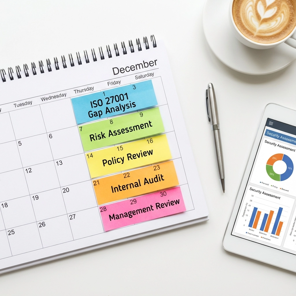 Week of December 8th-14th: Foundation Setting This week, focus on getting management buy-in and allocating budget. If you haven't already, have that conversation with your leadership team about why ISO 27001 matters for your business. Define your ISMS scope and document your organizational context. These conversations might be easier during the festive season when everyone's in a good mood!